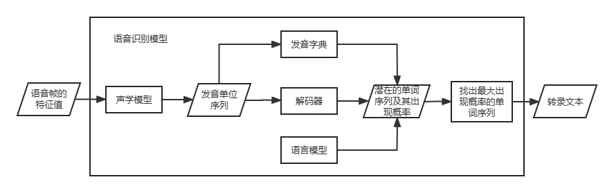 根据我的理解画的语音识别模型的各部件处理流程图。