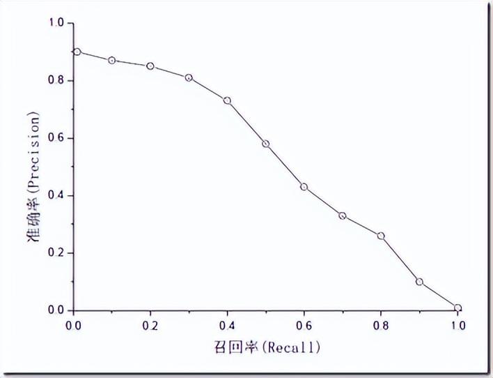 准确率和召回率是互相影响的,理想情况下肯定是做到两者都高,但是一般情况下准确率高、召回率就低,召回率低、准确率高,当然如果两者都低,那是什么地方出问题了。一般来说,精确度和召回率之间是矛盾的,这里引入 F1-Score 作为综合指标,就是为了平衡准确率和召回率的影响,较为全面地评价一个分类器。F1 是精确率和召回率的调和平均。F1-score 越大说明模型质量更高。一般情况,用不同的阀值,统计出一组不同阀值下的精确率和召回率,如下图: