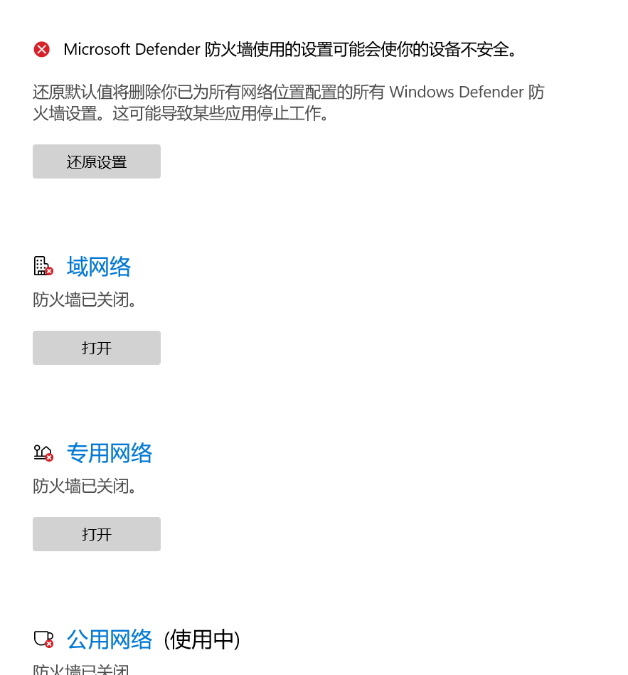 关闭windows上的防火墙